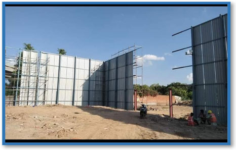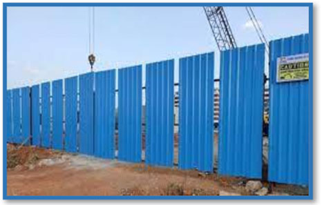 Galvanized color coated GI sheet barricading is a robust and visually appealing solution for creating temporary enclosures and barriers at construction sites, public events, and restricted areas. These barricades are made from galvanized iron (GI) sheets, which are coated with a layer of zinc to protect against corrosion and then painted with durable, weather-resistant colors for enhanced aesthetics and visibility. The color coating not only improves the appearance but also provides an additional layer of protection against environmental elements, extending the lifespan of the barricades. Easy to install and dismantle, these sheets are often used to secure the perimeter of a site, control crowds, or protect pedestrians from construction activities. The combination of strength, durability, and visibility makes galvanized color coated GI sheet barricading an effective and versatile choice for various temporary fencing and partitioning needs.